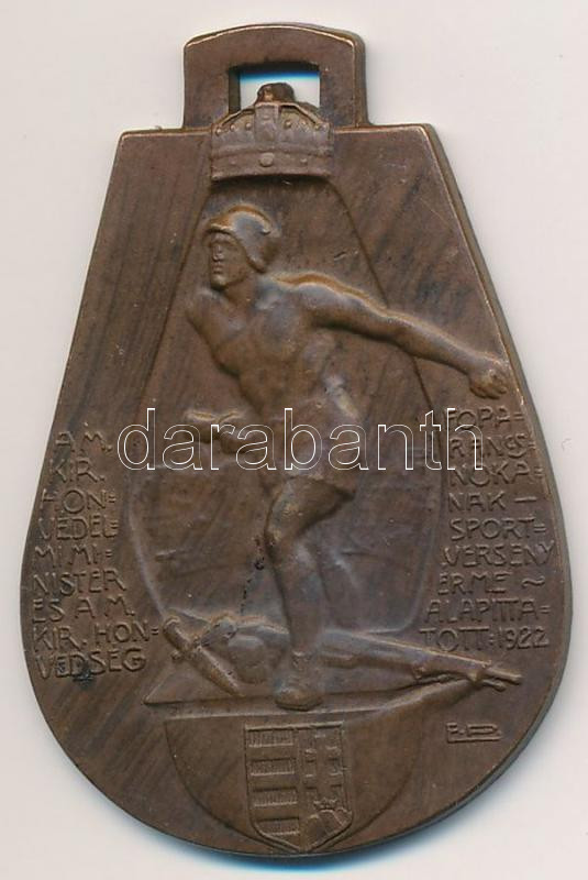 Description: 1922. "A Magyar Királyi Honvédelmi Miniszter és a Magyar Királyi Honvédség Főparancsnokának Sportverseny Érme - Alapíttatott 1922" Br díjérem szalag nélkül (56x37mm) T:2