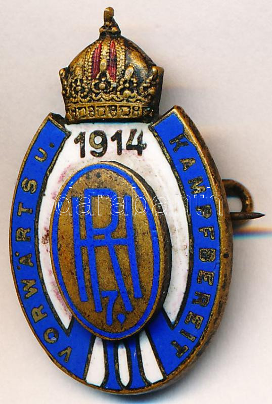 Osztrák-Magyar Monarchia 1914. "7. Huszárezred - Előre és harcra kész"... https://www.darabanth.com/en/223-Online-auction/223.0/Numismatics/Military~10017/Osztrak-Magyar-Monarchia-1914-7-Huszarezred--Elore-es-harcra-kesz-zomancozott-fem-sapkaj~II967097