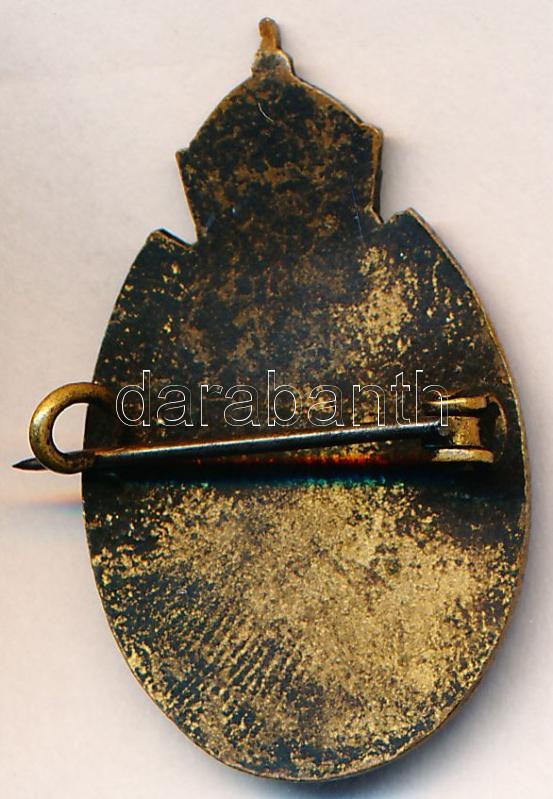 Description: Osztrák-Magyar Monarchia 1914. "7. Huszárezred - Előre és harcra kész" zománcozott fém sapkajelvény (21x35mm) T:2