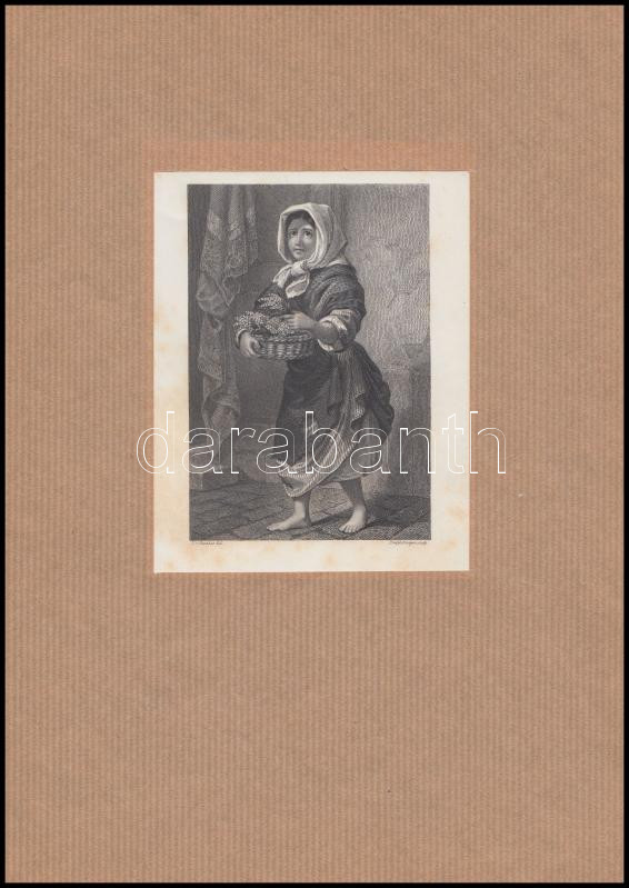 cca 1850 Fiatal kosárhordó lány portréja, Barabás Miklós képe nyomán, ...