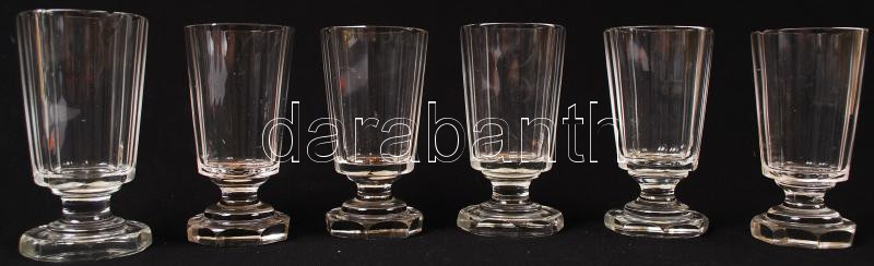 6 db boros pohár, apró csorbákkal, m: 12 cm
