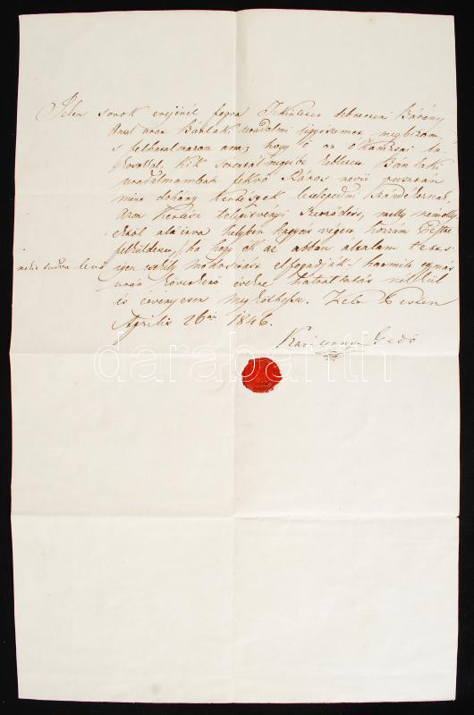 1846 Karácsonyi Gedö, bánlaki főúr saját kézzel írt, viaszpecsétes lev...