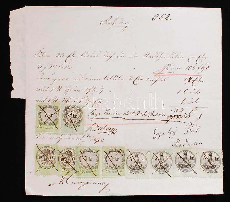 https://www.darabanth.com/en/223-Online-auction/223.0/Other-collectibles/Historical-documents-manuscripts~32/1872-Nemet-nyelvu-szamla-10-7-5-es-2-kr-as-okmanybelyegekkel~II954188
