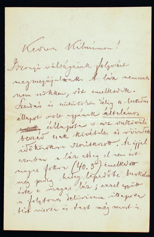 1886 Arany László (1844-1898) kézzel írt levele sógorának, Szél Kálmánnak közeli hozzátartozója igen súlyos betegségéről