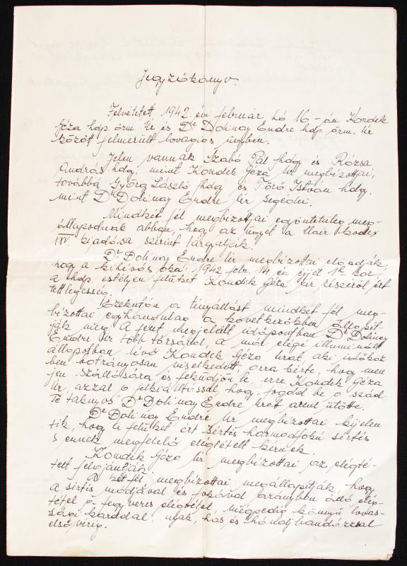 1942 Párbaj jegyzőkönyv dr. Dolinay Endre és Kondek Géza közt felmerül... https://www.darabanth.com/en/223-Online-auction/223.0/Other-collectibles/Historical-documents-manuscripts~32/1942-Parbaj-jegyzokonyv-dr-Dolinay-Endre-es-Kondek-Geza-kozt-felmerulo-becsuletbeli-ugy-r~II969496