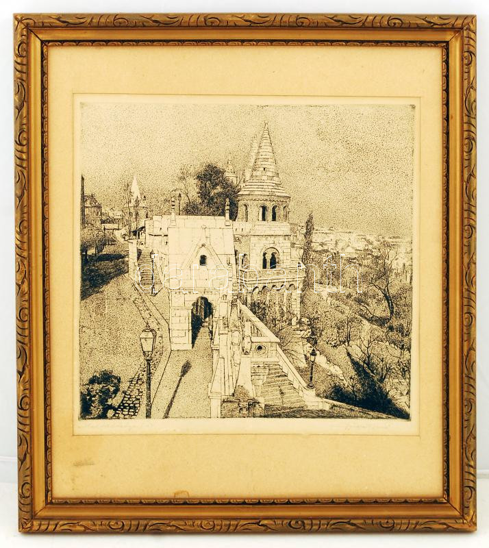 Dudás Jenő (1900-1991): Halászbástya II. rézkarc, papír, jelzett, 31x3...