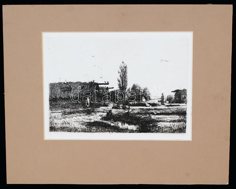 Mikola András (1884-1970): Tanya. Rézkarc, papír, hagyatéki pecséttel,...