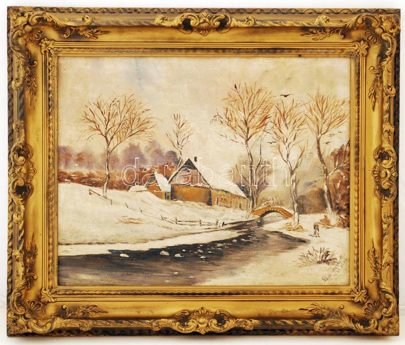 Olvashatatlan jelzéssel: Téli faluvég. Olaj, vászon, antik keretben, 4...