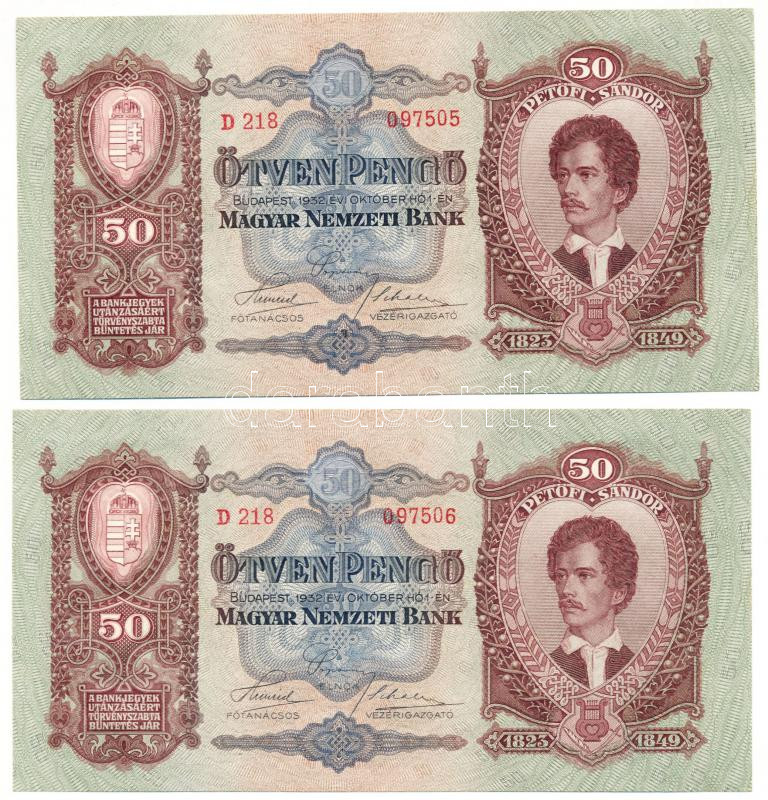 1932. 50P (2x) egymásutáni sorszámmal T:I