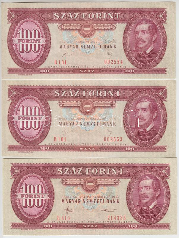 1984. 100Ft (2x) sorszámkövetők + 1989. 100Ft (2x) sorszámkövetők T:I