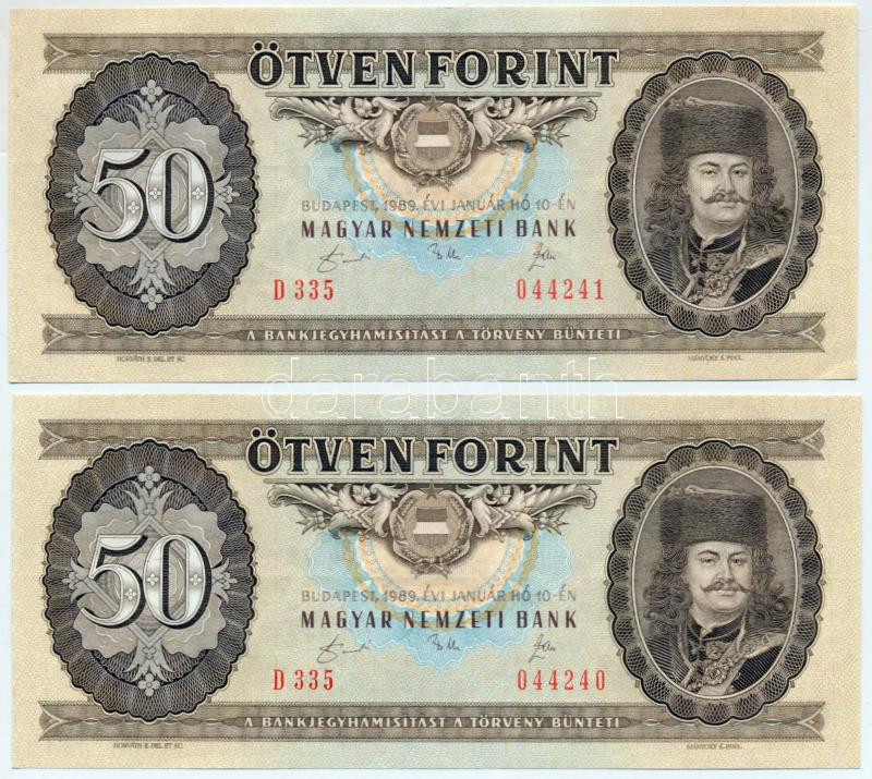 https://www.darabanth.com/en/224-Online-auction/224.0/Numismatics/Hungarian-Banknotes~20007/1989-50Ft-2x-sorszamkovetok-nyomdai-papirranccal-TI-I-egyiken-kis-sarokhajlasok~II981886
