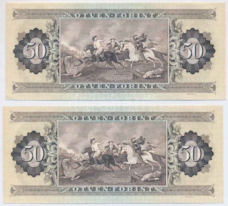 1989. 50Ft (2x) sorszámkövetők, nyomdai papírránccal T:I,I- egyiken kis sarokhajlások
