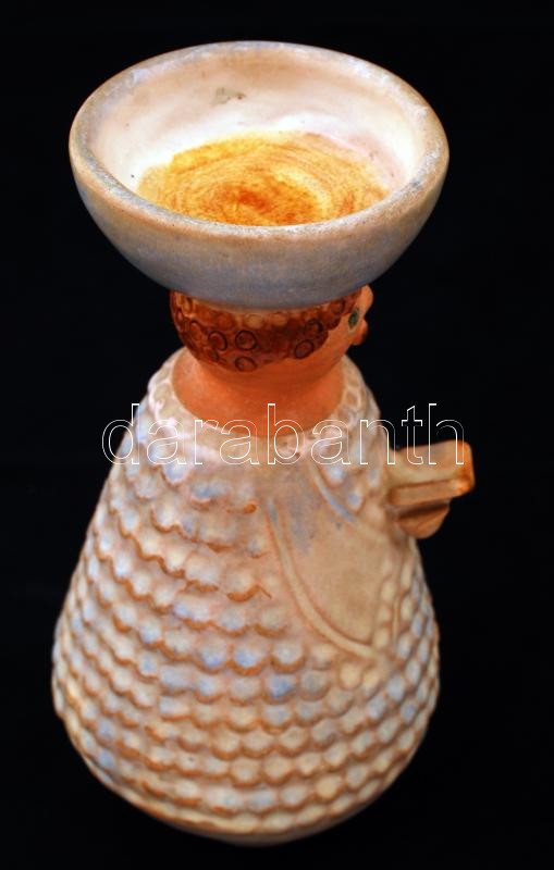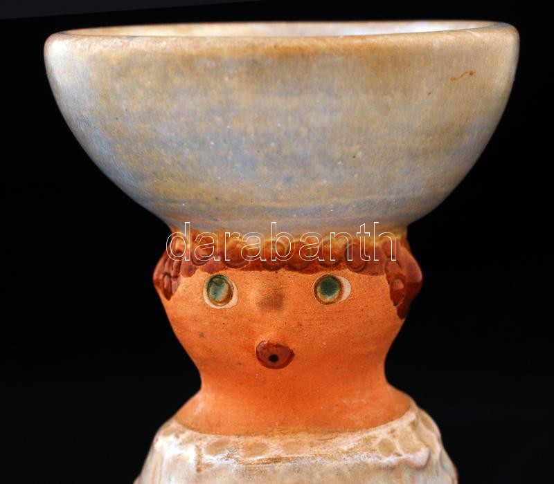 Kiss Roóz Ilona (1920-2010): Felolvasó asszony. Mázas festett kerámia gyertyatartó, jelzett, hibátlan, m: 19,5 cm / Ceramics figure