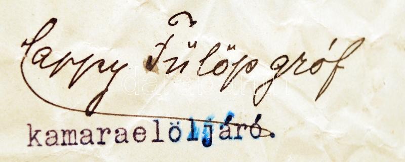 1911 Pozsony, Cappy Fülöp, Anna főhercegnő kamaraelőljárójának aláírás...