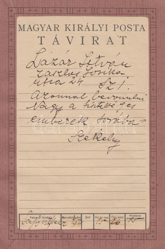 1942 Bp., Imrédy Béla (1891- 1946) pénzügyminiszter aláírása A Magyar ... https://www.darabanth.com/en/224-Online-auction/224.0/Other-collectibles/Autographs~31/1942-Bp-Imredy-Bela-1891-1946-penzugyminiszter-alairasa-A-Magyar-Kiralyi-Allamvasutak-~II981299