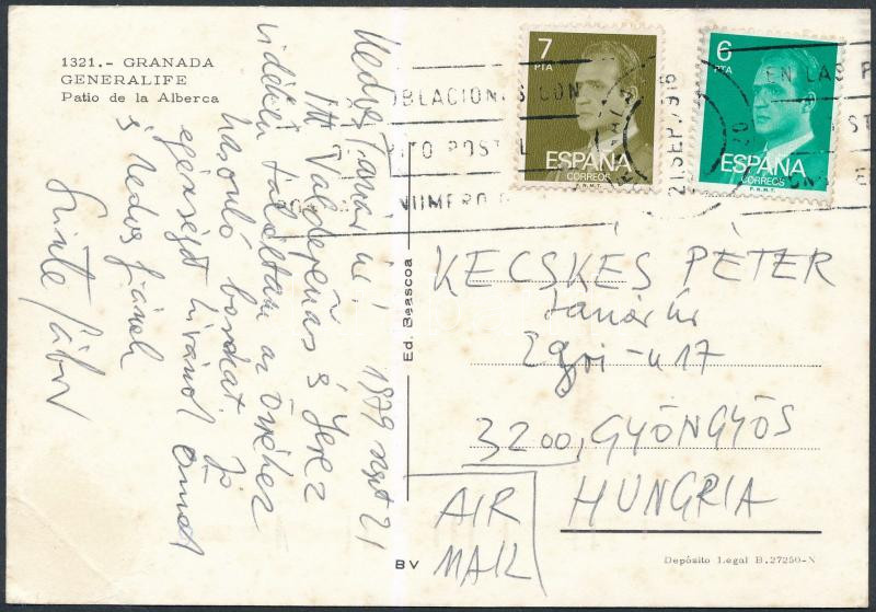 1979 Szinte Gábor festőművész, egyetemi professzor sajátkezű írásával és aláírásával írt Spanyolországból postázott színes képeslapja.