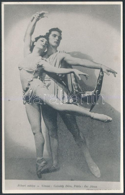 Ősi János aláírás a róla illetve partneréről, Csinády Dóráról készült képen a "Bihari nótája c. balettben. 1958