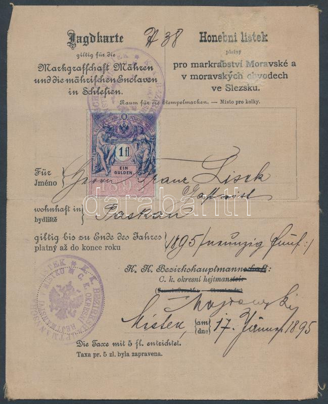 1895 Vadászati jegy /