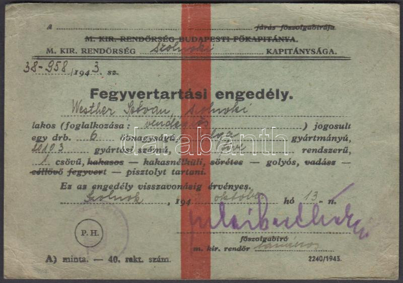 https://www.darabanth.com/en/224-Online-auction/224.0/Other-collectibles/Documents~27/1943-A-MKir-Rendorseg-szolnoki-kapitanysaga-altal-kiallitott-fegyvertartasi-engedely-okmC3~II981091