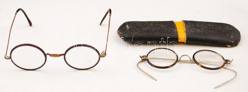 2 db régi szemüveg egyik eredeti tokjában
