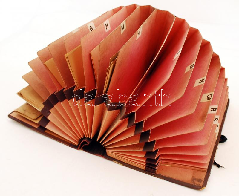 Régi előrendező, benne dokumentumokkal, félvászon kötésben.