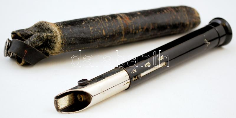 Régi kézi mikroszkóp eredeti tokjában, h: 13 cm