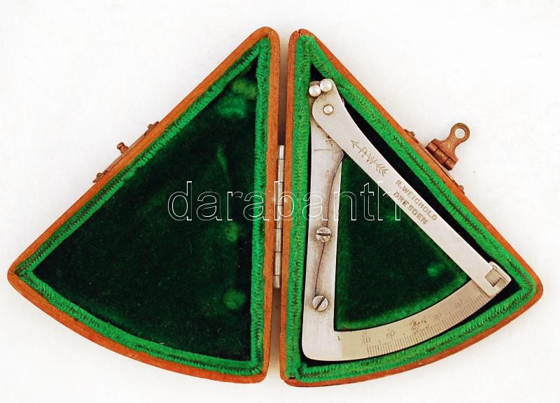 cca 1900-1930 Régi szextáns, R. Weichold, Dresden jelzéssel, bársony bélésű fa tokban, szép állapotban