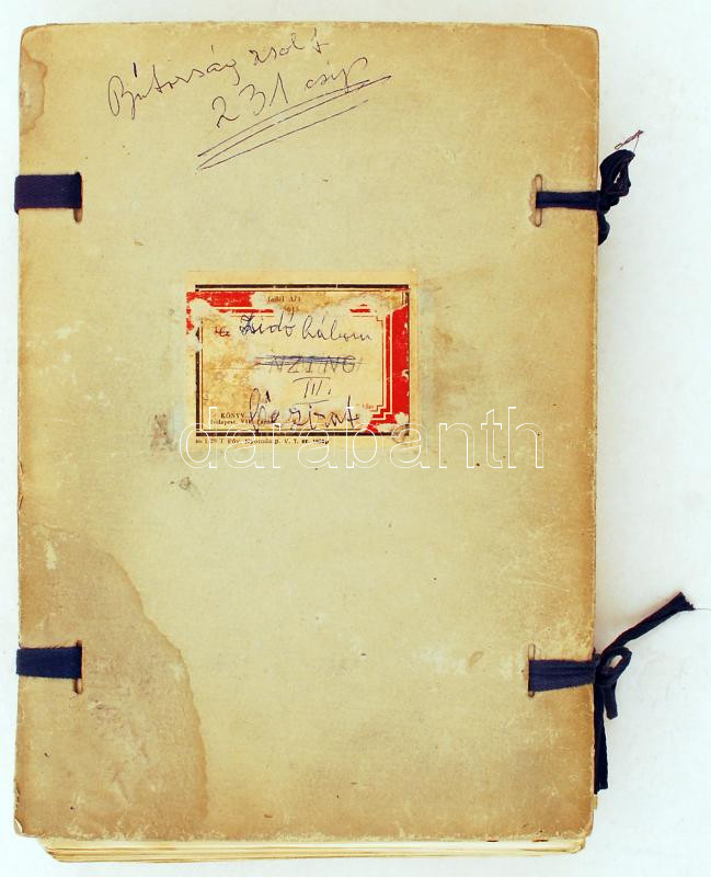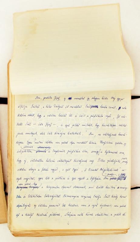 Lion Feuchtwanger (1884-1958) német regényíró A zsidó háború c. trilógiája harmadik kötete (Eljön a nap) Terényi István (1913-1973) által készített magyar fordításának kézirata, 690 kézzel írt, összetűzött oldal, mappába kötve, jó állapotban.