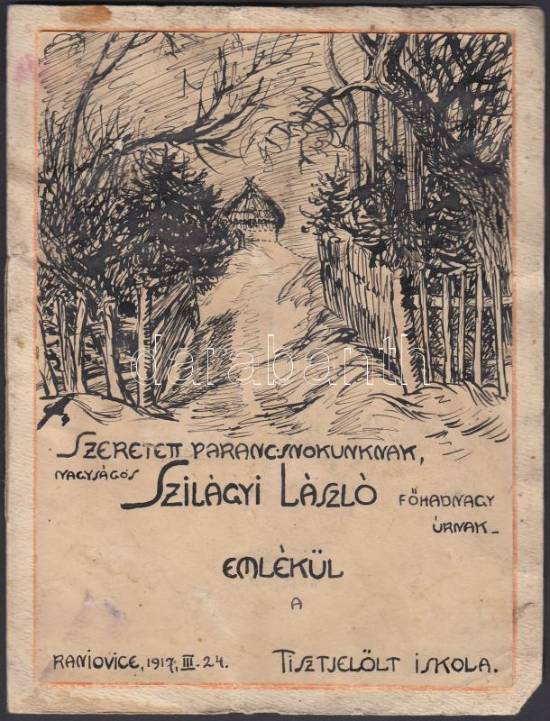 1917 Raniovice, "Szeretett parancsnokunknak, nagyságos Szilágyi László... https://www.darabanth.com/en/224-Online-auction/224.0/Other-collectibles/Military~3/1917-Raniovice-Szeretett-parancsnokunknak-nagysagos-Szilagyi-Laszlo-fohadnagy-urnak-emlekC3~II981283