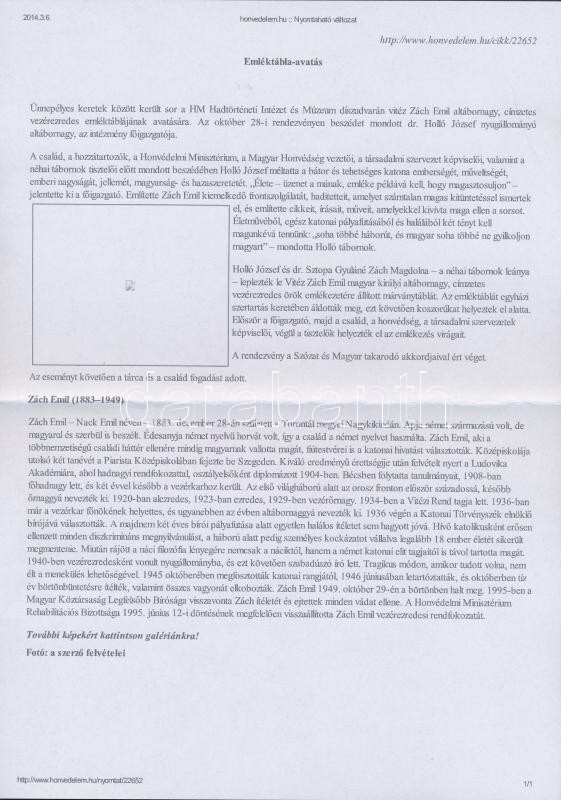 1936. január 17. Budapest, Gellért Szálló, Nack (Zách) Emil altábornag... https://www.darabanth.com/en/224-Online-auction/224.0/Other-collectibles/Military~3/1936-januar-17-Budapest-Gellert-Szallo-Nack-Zach-Emil-altabornagy-cimzetes-vezerezred~II976572