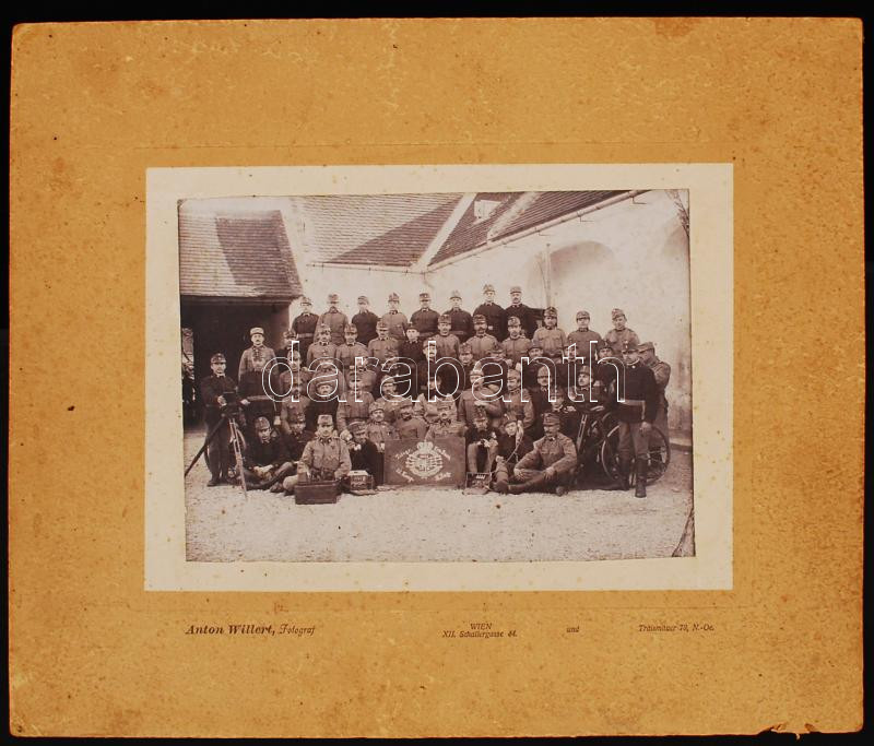 Description: cca 1916-1918 Wien(Bécs), Katonai távíró csoport képe, kartonra kasírozva, jelzett, 21x15 cm /