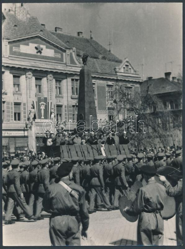 cca 1960 Vázsonyi Miklós: Kecskeméti katonai felvonulás április 4-én, ...