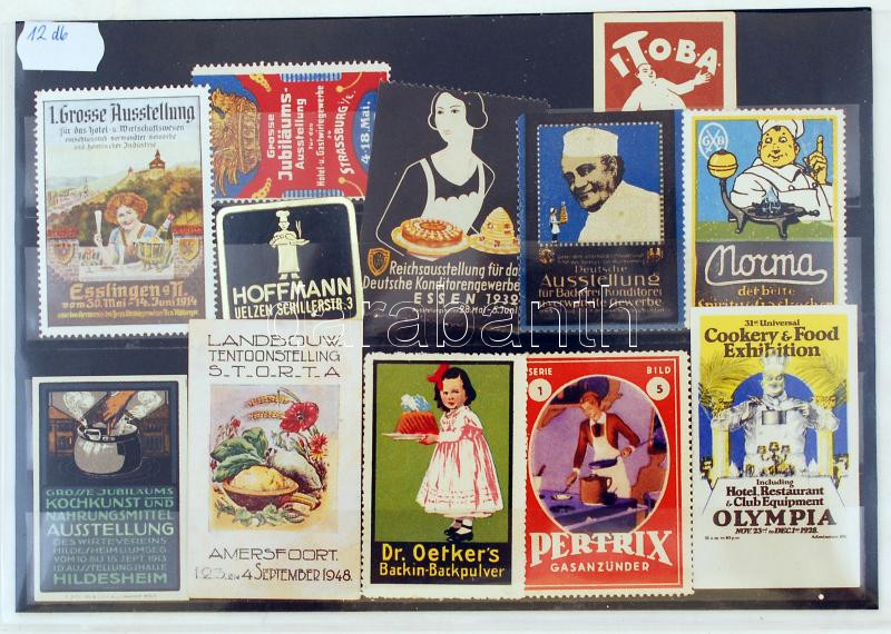 12 db konyhaművészettel kapcsolatos levélzáró (Dr. Oetker's, Hoffmann stb.)