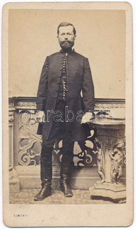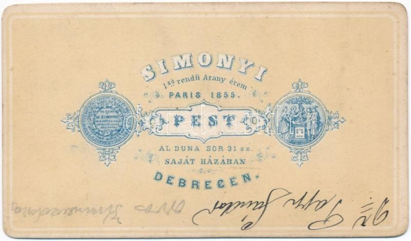 Description: cca 1860-1870 Dr. Papp Sándor kunmadarasi orvos műtermi fotója vizitkártya méretben, amelyet Simonyi készített Pesten vagy Debrecenben, feliratozva, keményhátú, 10,5x6 cm