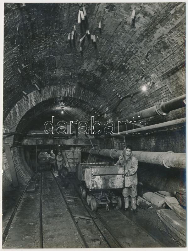cca 1950 Járai Rudolf: Gáspár Teréz csillés a metró alagútban, melyet ...