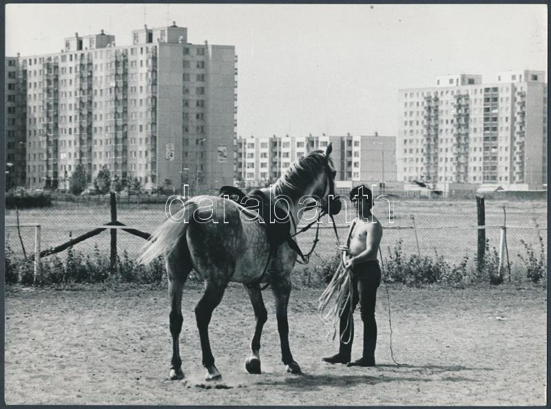 cca 1975 Kalocsai Rudolf: Lakótelepi hátasló lovásszal, a szerző által... https://www.darabanth.com/en/224-Online-auction/224.0/Other-collectibles/Photo~33/cca-1975-Kalocsai-Rudolf-Lakotelepi-hataslo-lovasszal-a-szerzo-altal-feliratozott-vintage-fo~II976649