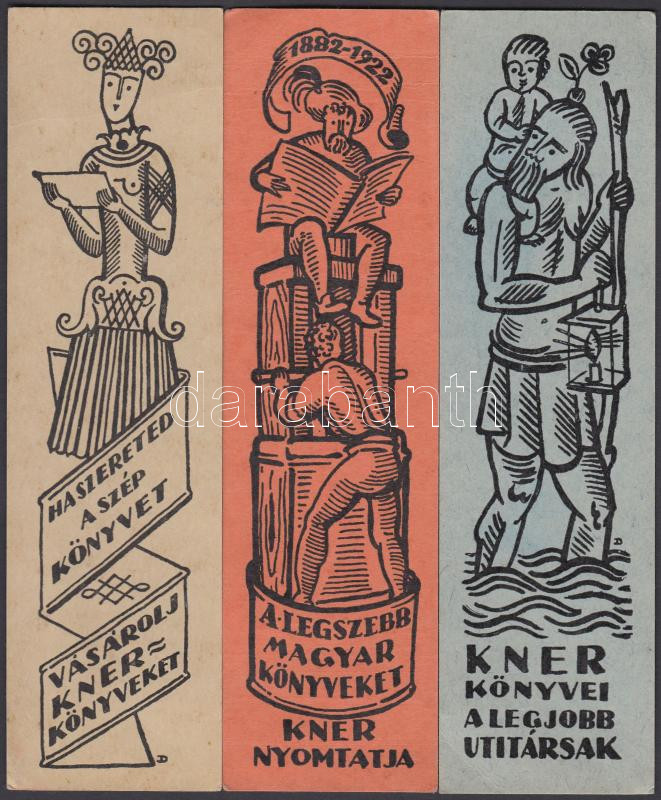 1922 "A legszebb magyar könyveket Kner nyomtatja" , 3 db Kner könyvjelző