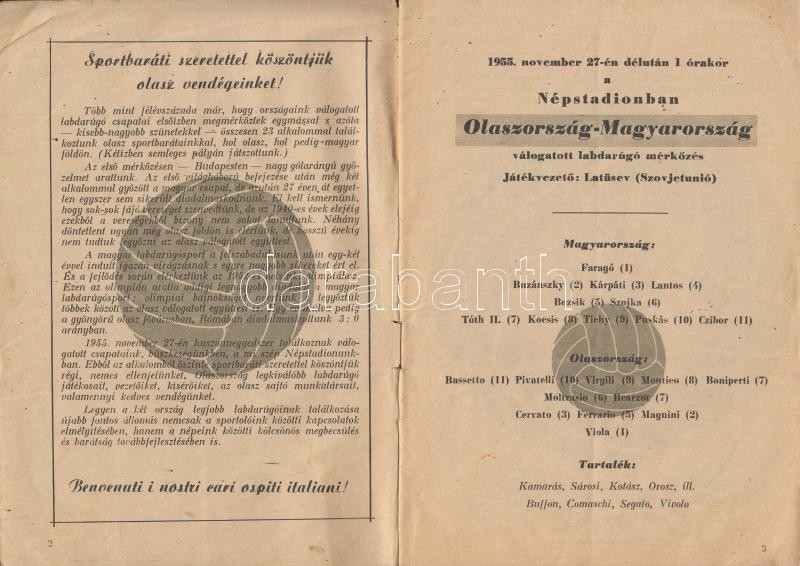 1955 Az Olaszország-Magyarország válogatott labdarúgó mérkőzése a Népstadionban, programfüzet, 32p