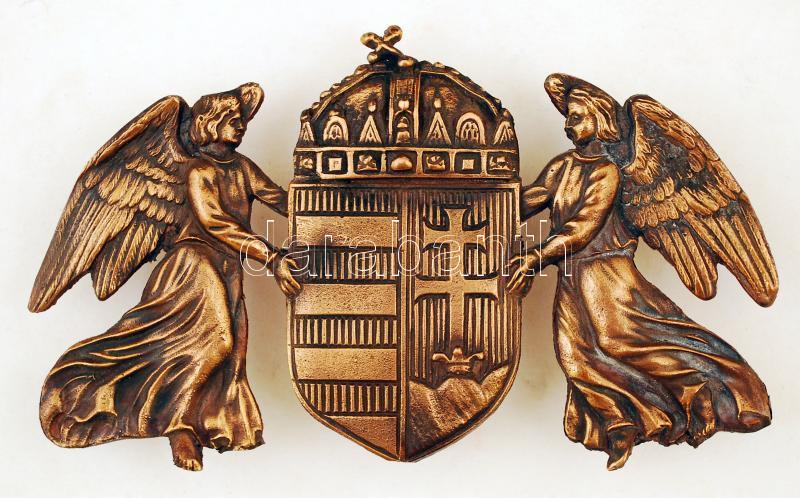 Koronás kiscímer pajzstartó angyalokkal, réz, falra szerelhető, 19×11 ...