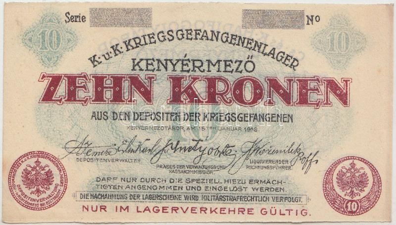Kenyérmező/hadifogolytábor 1916. január 15. 10K sorozat- és sorszám nélkül T:I-
