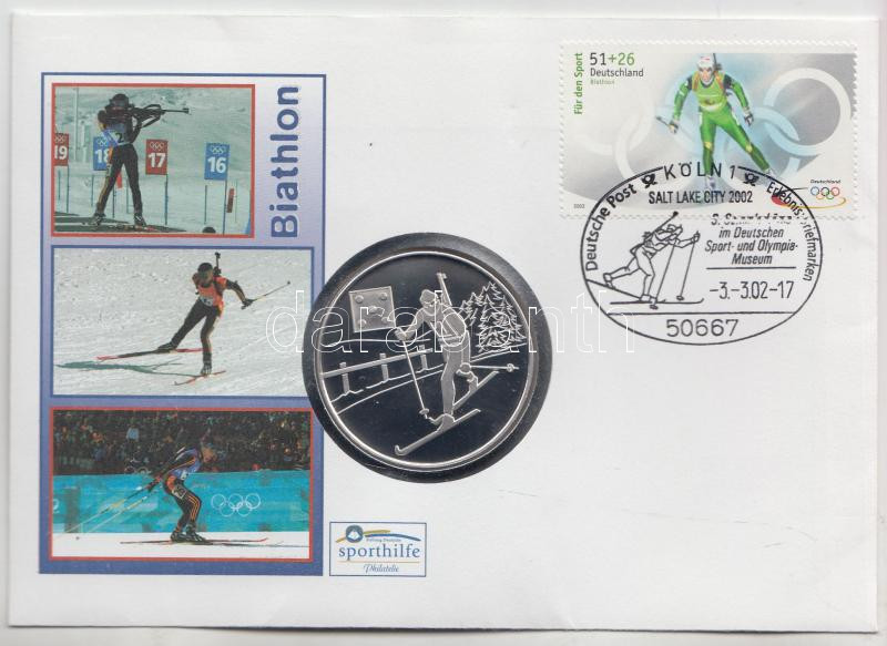 Description: Németország 2007. "40 éves a Német Sportsegítő Alapítvány 1967-2007 / Biatlon" emlékérem bélyegzős borítékon T:PP
