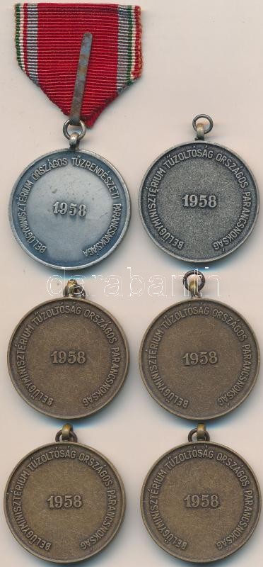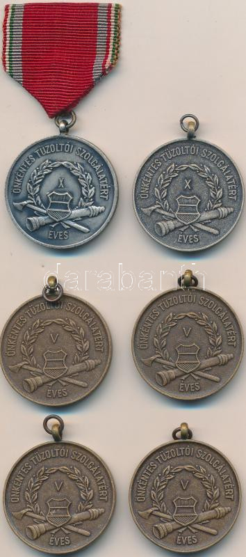 1958. "5 éves önkéntes tűzoltói szolgálatért" Br kitüntetés szalag nélkül (4x) + "10 éves önkéntes tűzoltói szolgálatért" fém emlékérem mellszalag és nélküle (2x) T:2