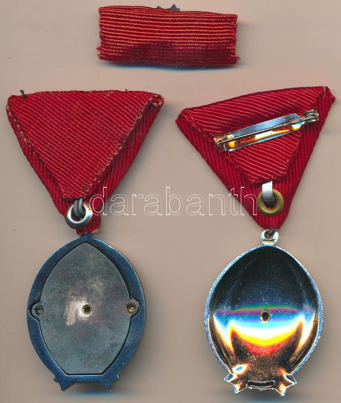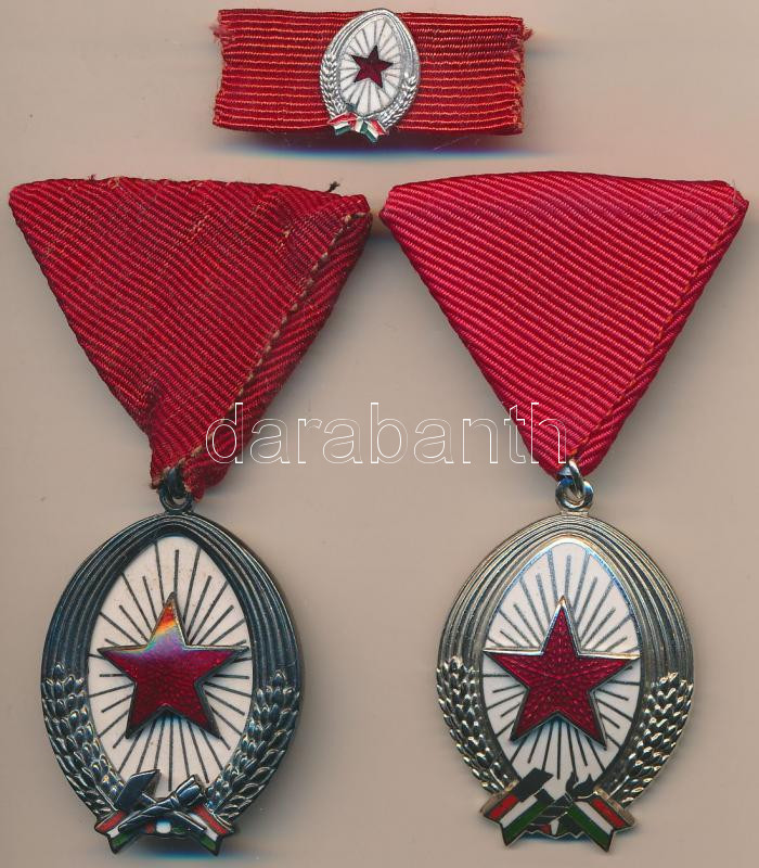 1964. "Munka Érdemrend" ezüst fokozata, ezüstözött és zománcozott Br kitüntetés mellszalagon + 1985. "Munka Érdemrend" ezüst fokozata, ezüstözött és zománcozott Br kitüntetés mellszalagon, miniatűrrel szalagsávon, mindkettő egy tokban T:2,1- az 1964-es változatról lekopott az ezüstözés