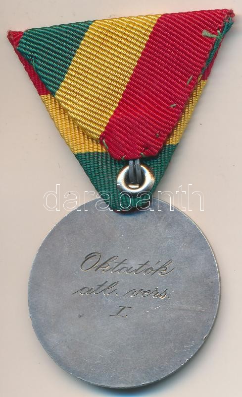 ~1930-1940. "Budapest Székesfővárosi Levente Egyesületek / Oktatók atlétikai versenye I. hely" jelzetlen Ag díjérem mellszalagon. Szign.: Boskol L. (29,65g/41mm) T:2