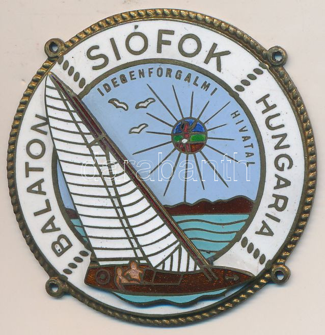 https://www.darabanth.com/en/225-Online-auction/225.0/Numismatics/Faleristics-medals-orders-badges~62/7E1970-Balaton--Siofok--Hungaria--Idegenforgalmi-Hivatal-zomancozott-fem-jelveny-52mm-T2~II986982