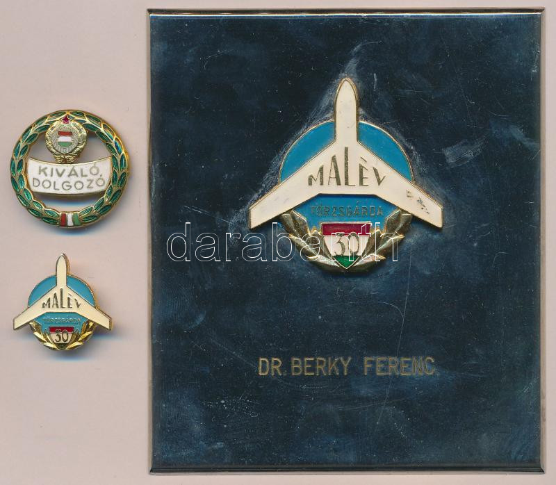 ~1970. MALÉV 30 éves törzsgárda kitüntetés miniatűrrel eredeti adományozói dísztokban T:2 + kiváló dolgozó zománcozott kitüntetés