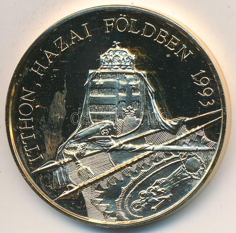 Bognár György (1944-) 1993. "Vitéz Nagybányai Horthy Miklós / Itthon hazai földben" aranyozott emlékérem dísztokban (42,5mm) T:BU