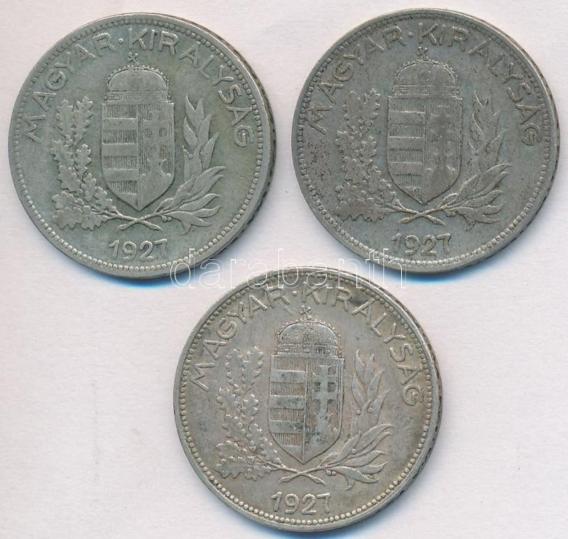 https://www.darabanth.com/en/225-Online-auction/225.0/Numismatics/Hungarian-metal-and-silver-coins~54/1927-1P-Ag-3x-T2-2-~II993761