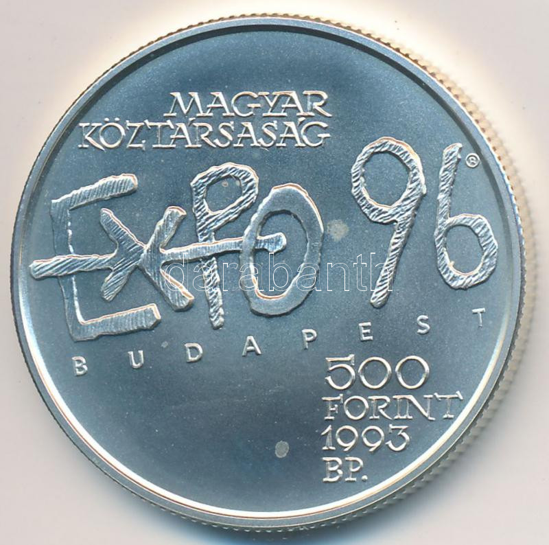 https://www.darabanth.com/en/225-Online-auction/225.0/Numismatics/Hungarian-metal-and-silver-coins~54/1993-500Ft-Ag-Expo-96-TBU~II991657