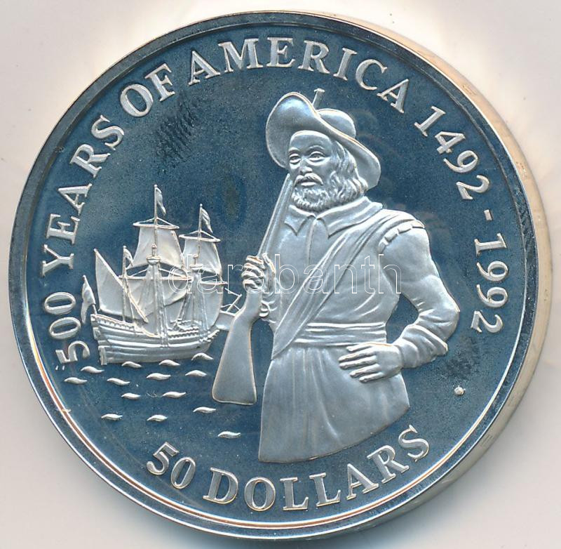 Description: Cook-szigetek 1990. 50$ Ag "500 éves Amerika 1492-1992 - Henry Hudson" T:PP enyhe felületi karc
